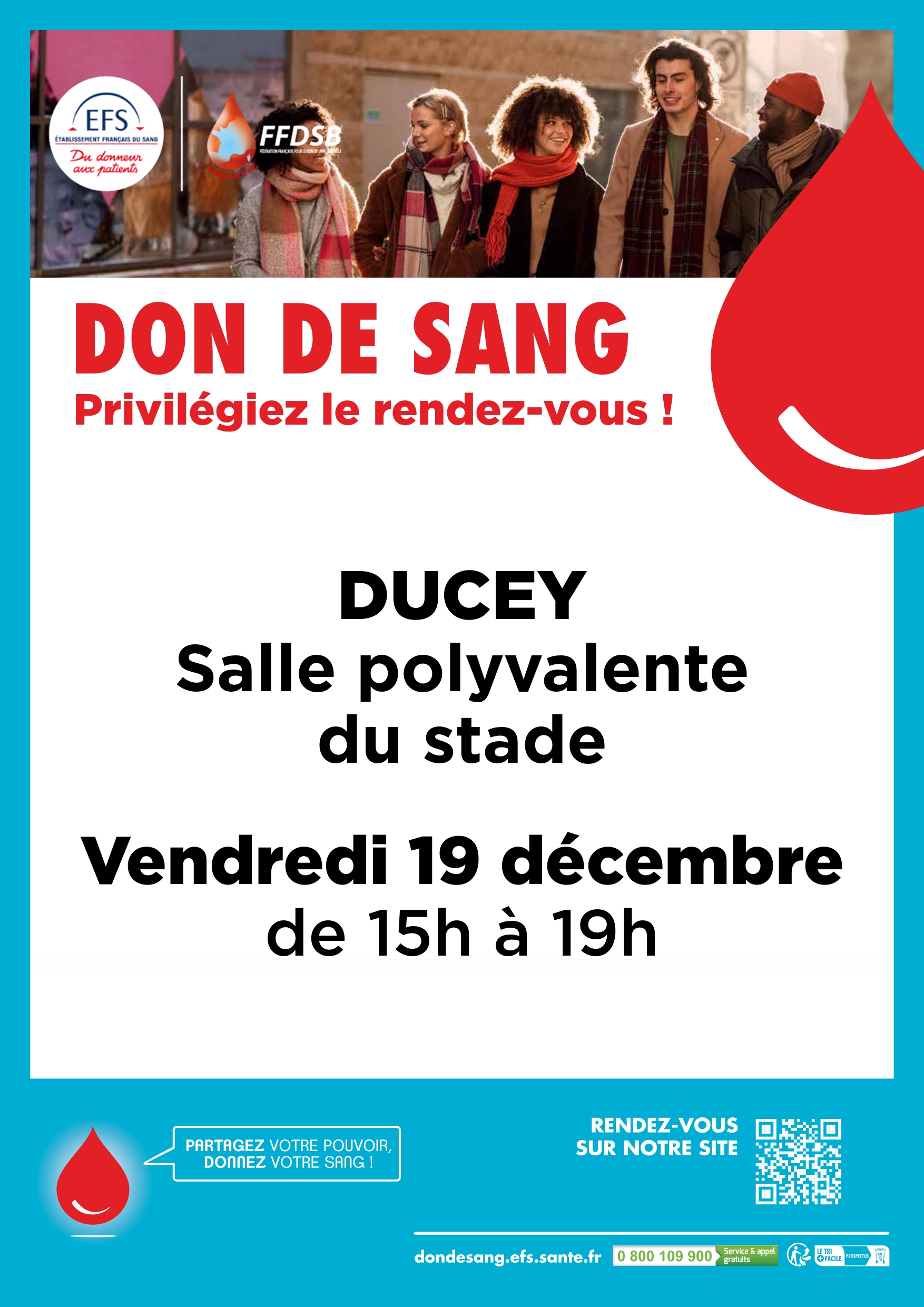 Vendredi 19 décembre de 15h à 19h à la Salle polyvalente du stade de Ducey
